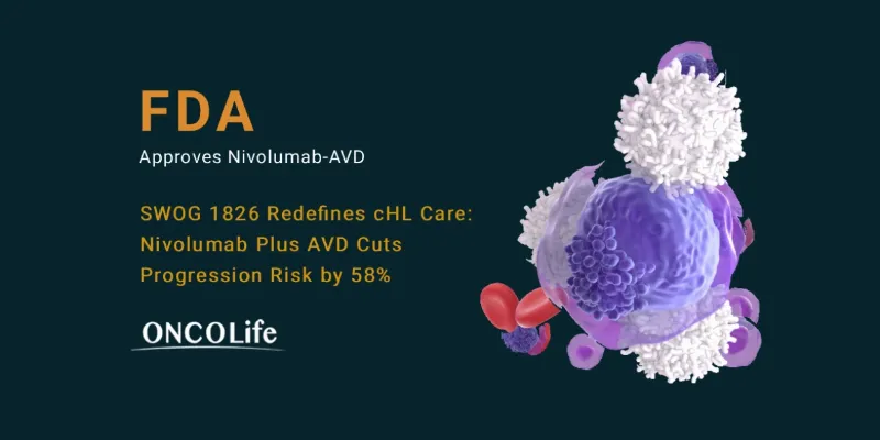 The FDA has approved nivolumab plus AVD as first-line treatment for advanced classical Hodgkin lymphoma in patients aged 12 and older. In the phase 3 SWOG 1826 trial, the regimen reduced the risk of progression or death by 58% versus BV-AVD, with sustained benefit at 36.7 months. This marks the first immunotherapy-based combination in frontline cHL, redefining treatment standards.